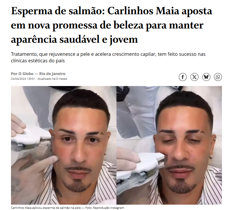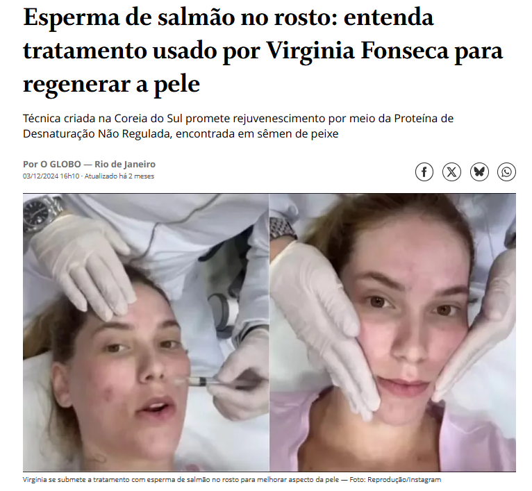 Com o poder exclusivo do esperma do salmão + Ácido Hialurônico + Retinol + Colágeno, com uma tecnologia avançada que diminui as rugas, bigode chinês e pé de galinha você volta a ter uma pele mais lisa e hidratada.